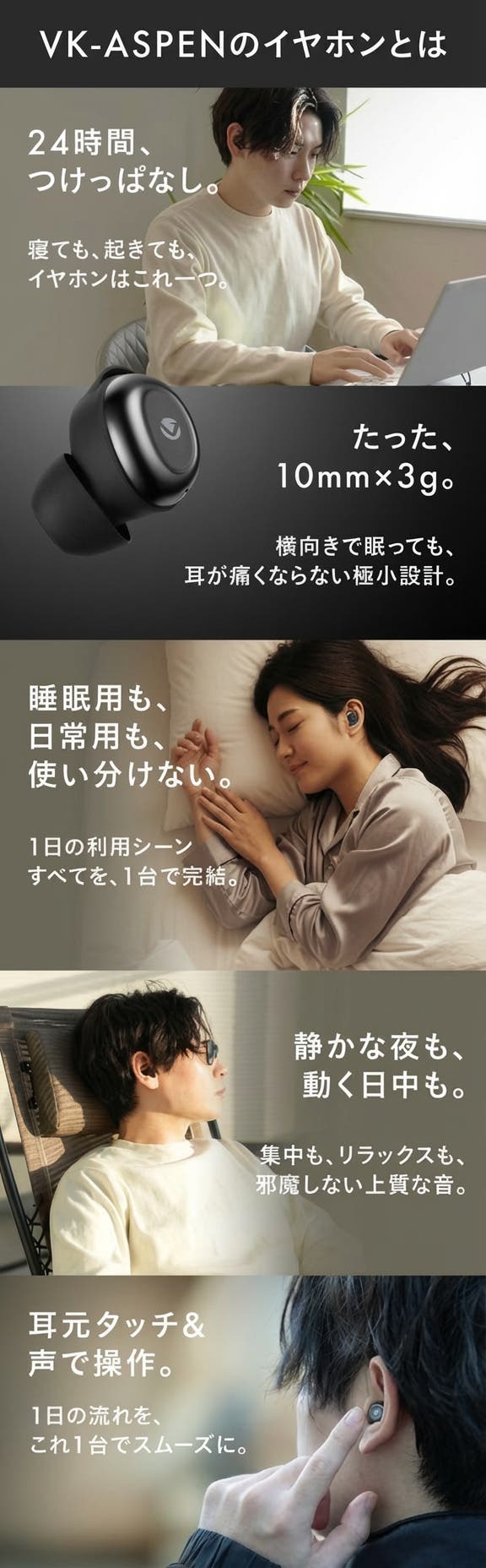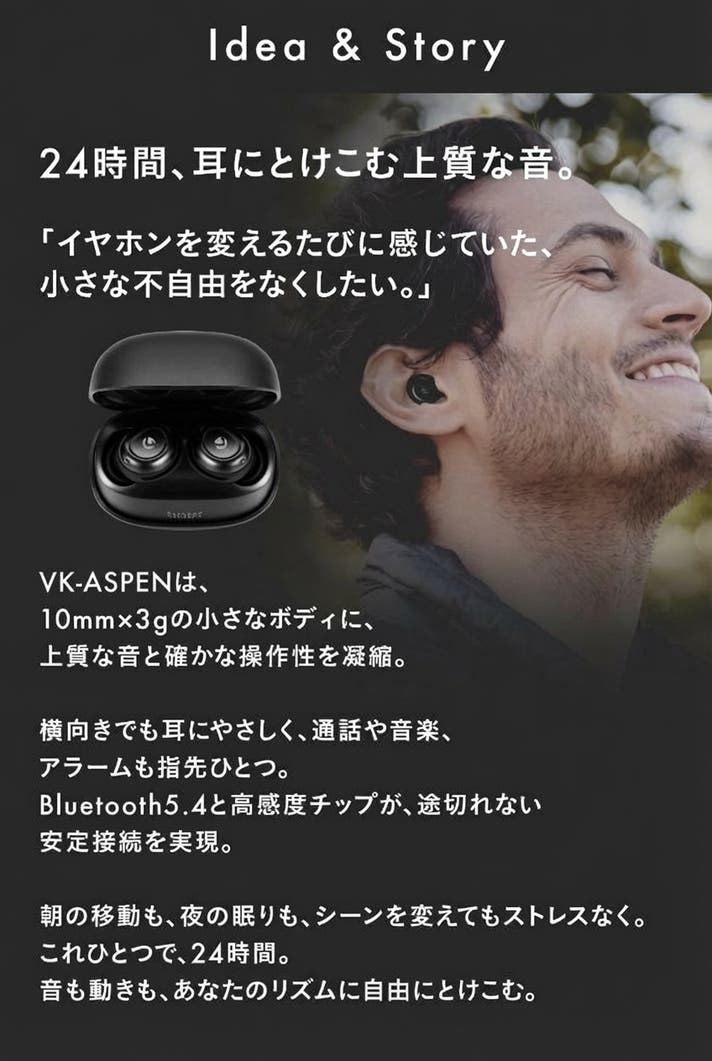 そして生まれたのが「眠りにそっと溶けこむイヤホン」VK-ASPEN。
