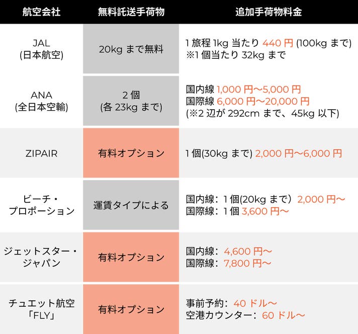 ※1 超過手荷物料金は、路線や通貨、購入時期によって異なる場合があります。 ※2 手荷物の規定や料金は予告なく変更される場合があります。最新情報は各航空 会社の公式ウェブサイトでご確認ください。