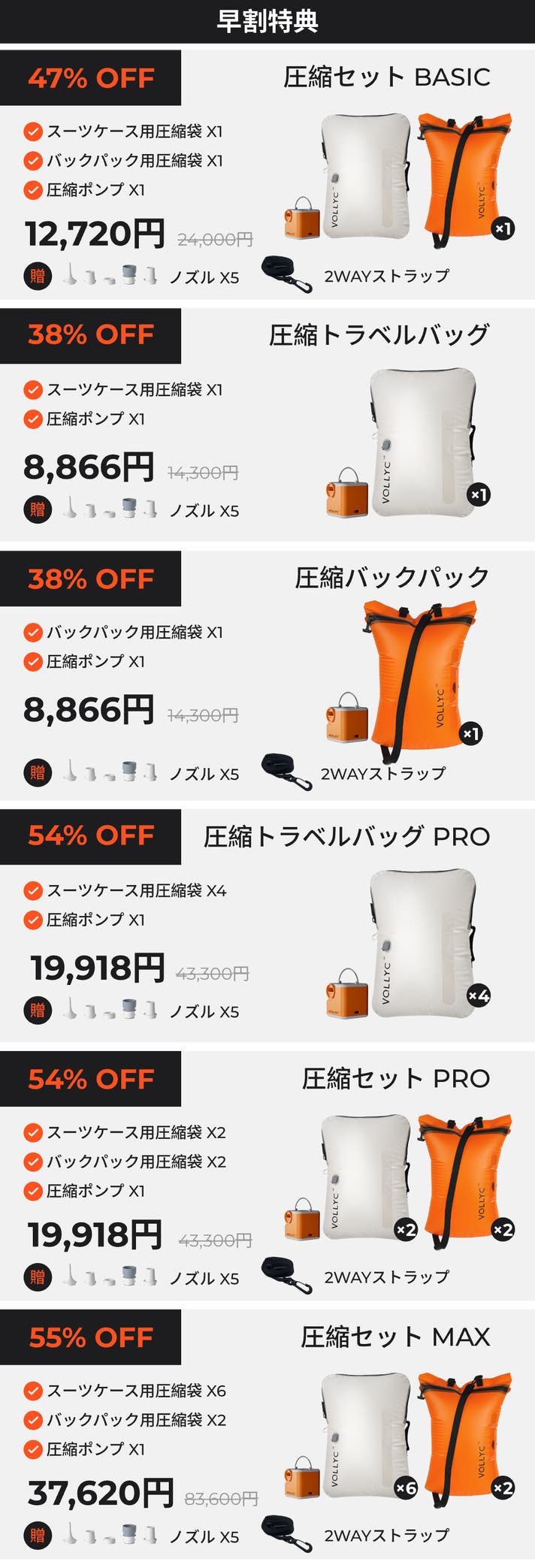 【早割・54%OFF】圧縮トラベルバッグ PRO
