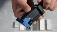 付属の角度測定バーを使えば、お手元の包丁の刃角を簡単に確認することができます。さらに、角度調整プレートの内部には強力なネオジム磁石が内蔵されており、刃の中央部分にブレずに固定され、安定した研磨が可能です。