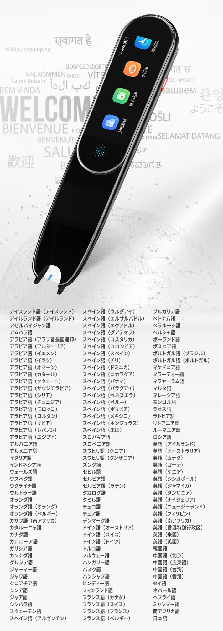 それを基に指定した言語に翻訳して、ペンにある液晶モニターにテキストで表示します。