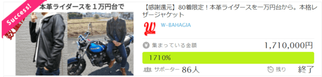 まずは本プロジェクトの本革ライダースジャケットを通して、ご支援者様との繋がりを持たせて頂けましたら幸いです。