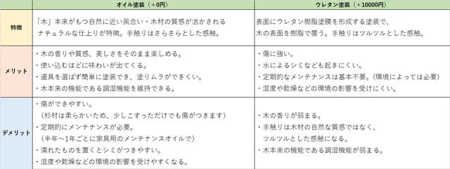 <塗装> :オイル塗装(+0円)、ウレタン塗装(+10,000円)