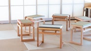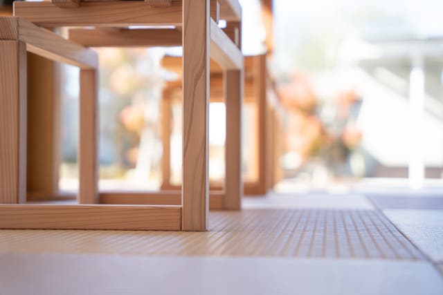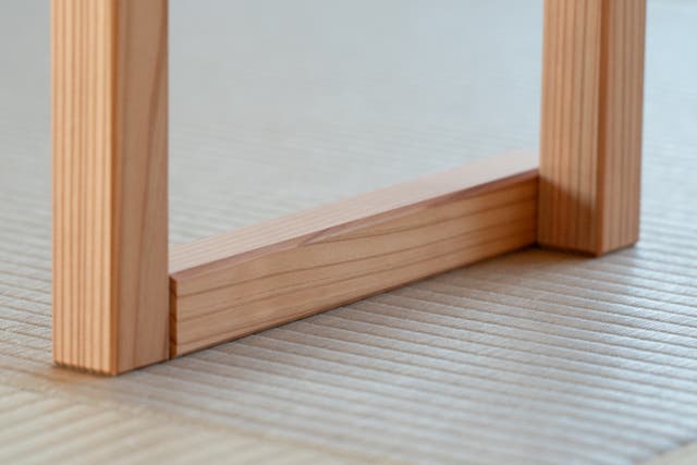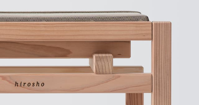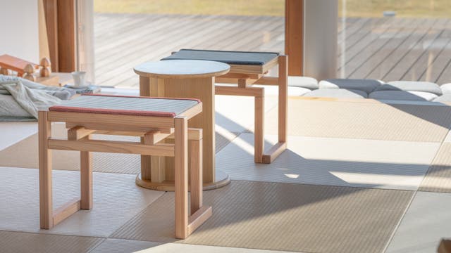 また、脚部は日本建築の構造体を意識し、縦材と横材を組合わせたつくりにしました。座面と脚部の間に隙間を設けることで、着色や過度な装飾をすることなく、自然と畳に目が向けられるデザインになっています。