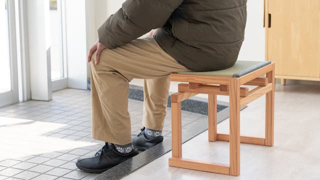 具体的には、畳や杉材といった日本文化を代表する天然素材を使うことで、経年変化を楽しみ、長く使えば使うほど愛着の湧く椅子にしています。
