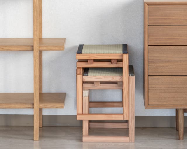 Wabi stoolとは、座面に畳を使用した木製スツールです。日本特有の美意識「侘び寂び」を取り入れたデザインで、和室・洋室どちらでもご利用いただけます。また、国家資格を有する職人たち(家具製作技能士、畳製作技能士)がそれぞれの技術を惜しみなく活かし、ディテールまでこだわった逸品に仕上げました。