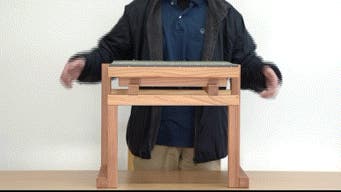 畳摺りとは、畳を傷つけにくくした "面" で支える脚の構造のことを指します。通常の椅子(脚が3本、4本)ですと、脚と設置面とが「点」で接する形になります。そうするとその部分に重心が寄ってしまうので、椅子に座ったり、引いたりする際に、畳に跡がついたり、強く擦れてしまうことがあります。畳摺り構造の脚では、「点」ではなく「面」で支えるため、重心を分散させ、脚の跡や畳への引っ掛かりを低減させることができます。