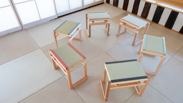 - 日本特有の美意識「侘び寂び」を取り入れたデザイン。座面の畳縁は6色から選べる。
