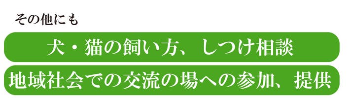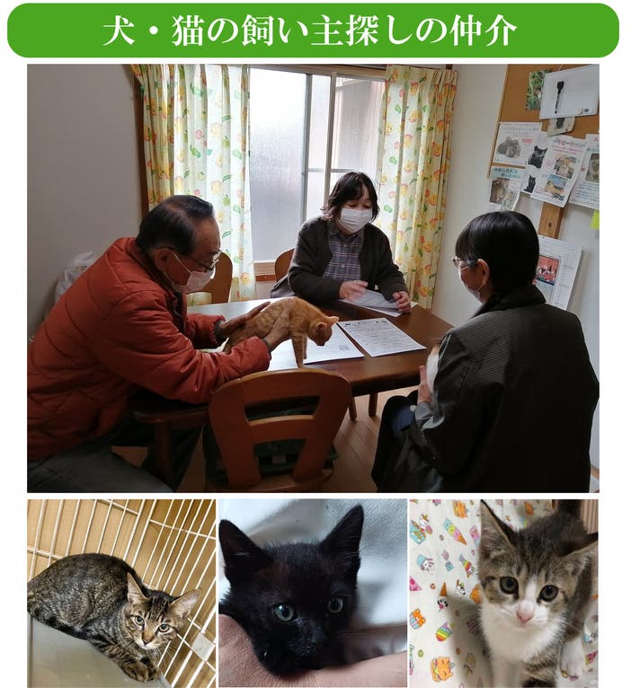 行き場のない犬・猫に家族として迎えてくれる新しい飼い主さん探しのサポート・飼い方指導をします。