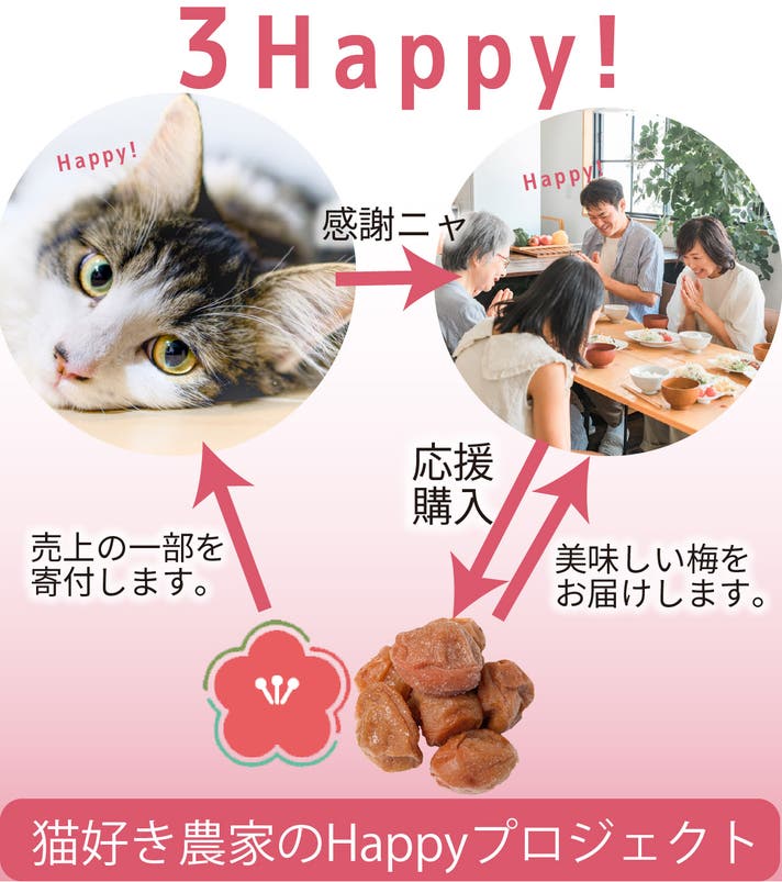 - 絶品梅を楽しむだけで猫や犬を救う!売り上げの一部がペットの寄付金になります。