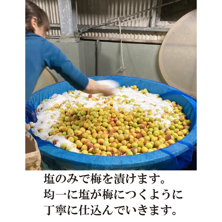 通常は1年塩に漬け熟成させて出荷しますが今回は2年熟成物を特別にMakuake用にご用意させて頂きました。塩や酸味のカドが取れ、熟成が進んだことで皮は柔らかく、ねっとりとした口どけとなっております。
