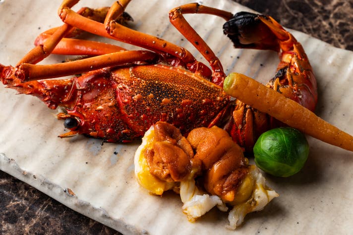 澄み渡る出汁に海老の旨味が溶け込んだ清汁で心を落ち着かせた後、伊勢海老の「具足煮(ぐそくに)」が登場。力強い海老の旨味を、優しい「たまごあん」が包み込み、冬の海の豊かさを表現します。