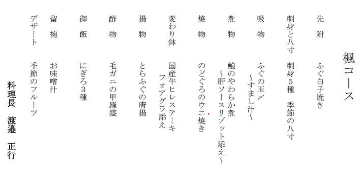 冬の味覚をご堪能頂く為にご用意した楓コースの3種類