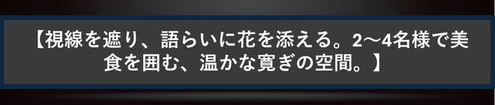2名様~5名様 デート・記念日、少人数の会食などに最適です。