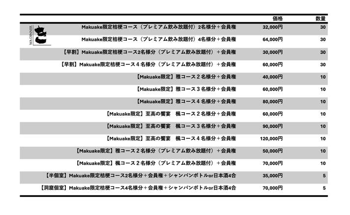 【Makuake限定】雅コース2名様分(プレミアム飲み放題付)+会員権