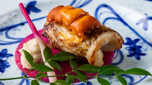 ・ふぐの玉〆 〜すまし汁〜 / 鮑のやわらか煮 〜肝ソースリゾット添え〜