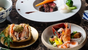 ここで再び「ふぐ」の力強い旨味をから揚げで堪能。さらに、繊細で甘みの強い毛ガニの甲羅盛りが登場し、贅沢の限りを尽くした海の旅を締めくくりへと向かわせます。