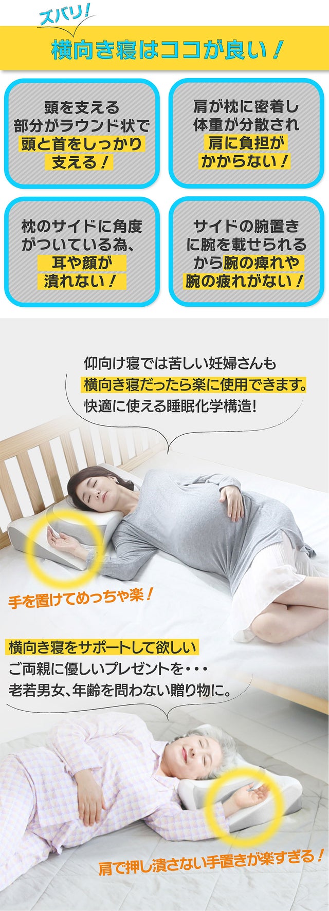 - 頭、首、肩、そして腕をしっかり支え、快適な横向き寝で安眠の世界へ。腕置きが楽すぎる新感覚!