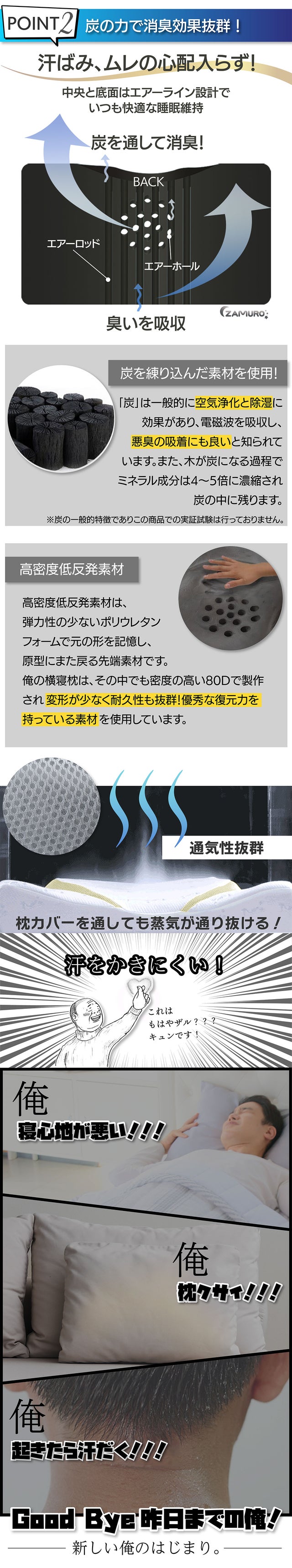 - 湿気取りパッド付属でいつでもサラサラ!炭を練り込んだ枕で消臭効果もバッチリ!快適な睡眠をお約束