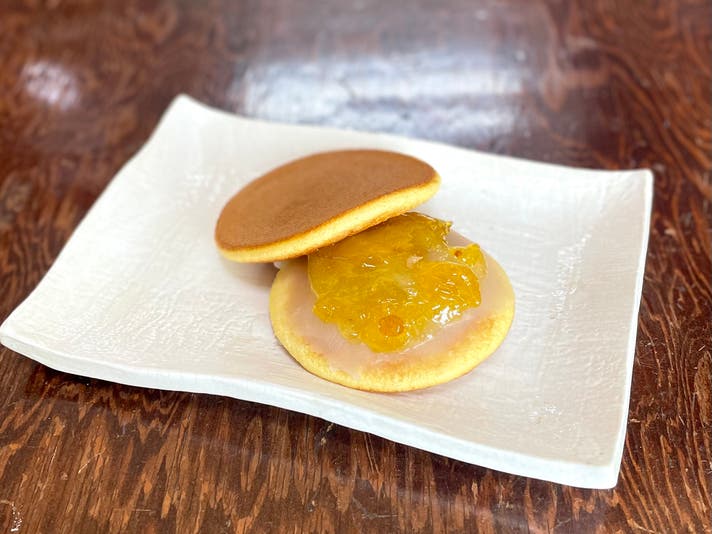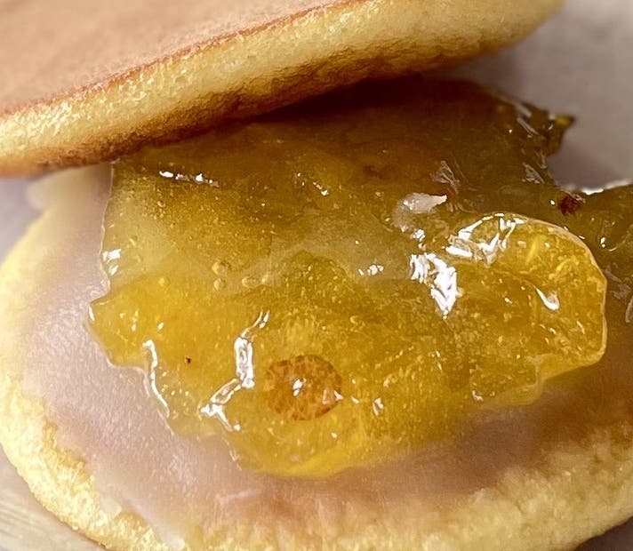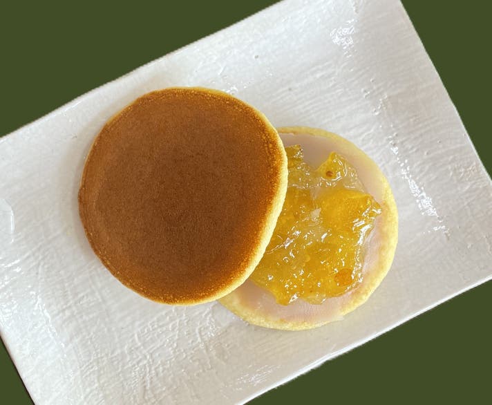 さっぱりとしたこだわりの自家製梅ジャムと、なめらかな白餡をふんわり生地で包み込んだ、蜂蜜香るどら焼きです。