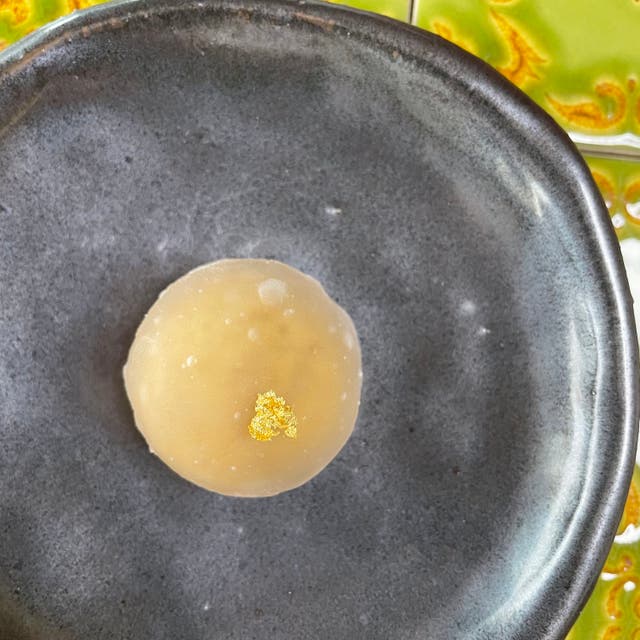 フレンチのソースから着想を得たパッションフルーツ、マンゴー、パイナップル、ゴールドキウイの4種類を絶妙な比率で配合し、白餡と炊き上げたトロピカル餡をくず餅で包んだ御菓子。