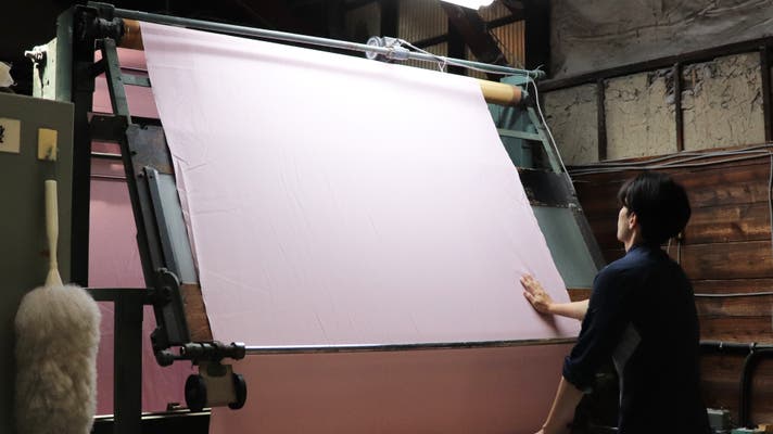 和晒は時間と手間がかかるので、現在は世界的に主流な洋晒がほとんどです。洋晒は生地を焚くのではなく、たくさんのローラを通し4時間~5時間ほどで漂白していく方法です。