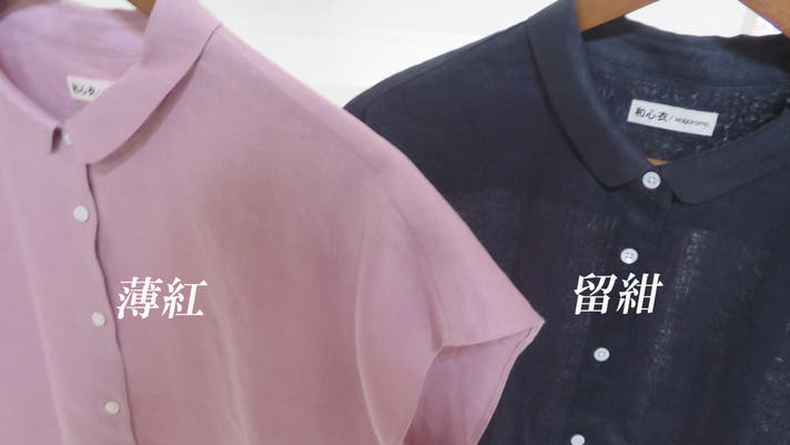和晒麻布レディスブラウス 薄紅・留紺 各1枚