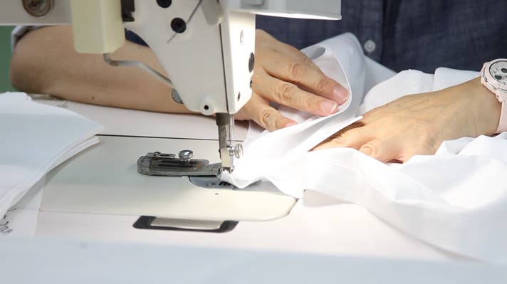 ⑤染色前にミシンで生地を繋ぎ合わせます。