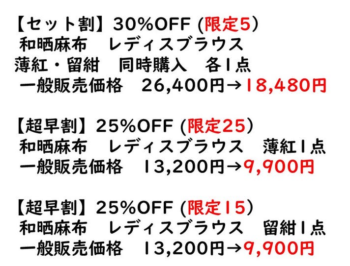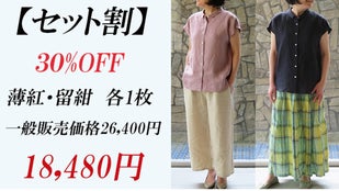 【セット割】和晒麻布レディスブラウス 薄紅・留紺 各1枚