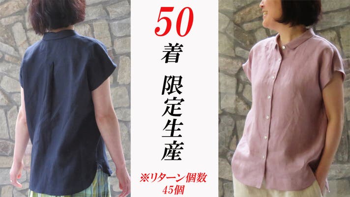 今回のプロジェクトですが、生地の数量に限りがあるため、何を企画するか迷いました。結論としては女性にこの柔らかなリネンを着て頂きたいと思い、このブラウス企画となりました。50着限定での生産(※リターン個数は45個)となります。