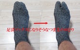 今回のプロジェクト商品は5本のステッチを入れ編立をしております。写真を見て頂くと分かりますが、つま先に凸凹が4つ生まれるように編立をし、その生地のあまり部分がつま先に解放感を生むのです。この5本のステッチの設定がはじめての試みで、一番苦労をしたところでもあり、つま先の解放感に繋がるポイントとなります。足袋ソックスでは無いのですが、親指と人差し指の間を押すと、足袋ソックスのようになる余裕がございます。(決してブカブカな訳ではございません。)