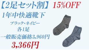 ・年中快適ソックス2足セット ブラック・グレー 各1足