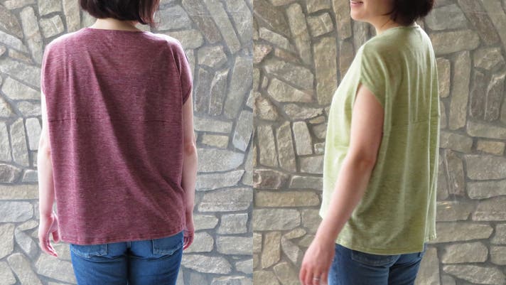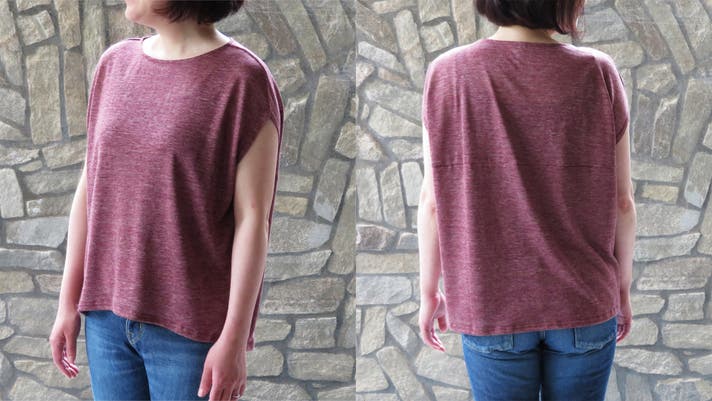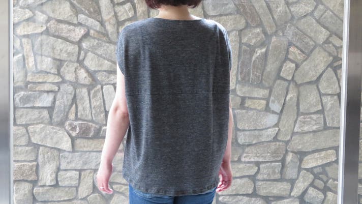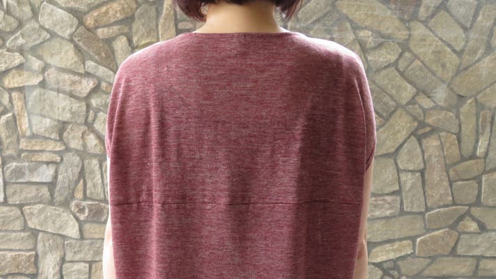 後ろ身頃は切り換えをいれることによりしまったイメージになり、また腕回りの動きも楽になる効果があります。