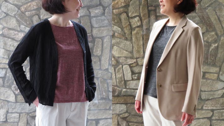 繭のように身体を丸く包み込むようなコクーンシルエット。体のラインを拾わないのもポイントです。
