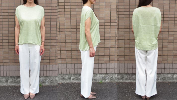 デザイン 衿元はスッキリとしたボートネック 清涼感があります。
