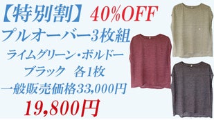 ・プルオーバー3枚組(ライムグリーン、ボルドー、ブラック各1点)