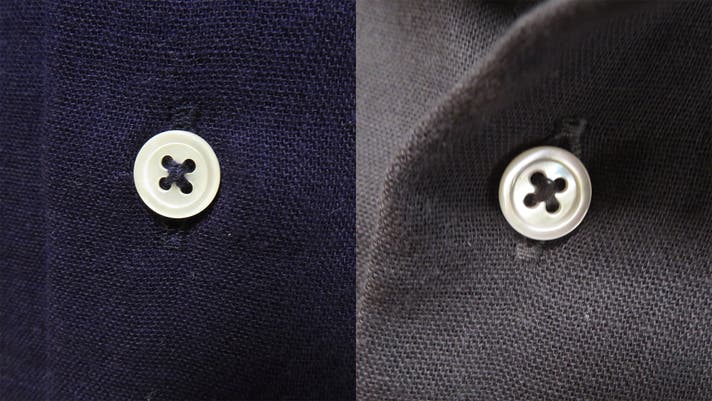 拘りポイント④釦は天然の貝釦 高級ドレスシャツでも使用される天然の貝釦を使用。