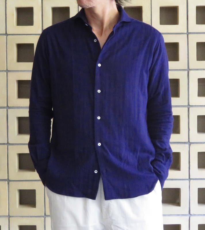 今回は秋冬に向けてということで、深みのあるカラーを2色ご準備致しました。ポイントはやはり肌触りと衿元の見栄えです。高級寝具の生地でも使われる、昔ながらの日本の伝統技法の「和晒し」で仕上げたシャツを、シャツが活躍する10月に向けてお届け致します。