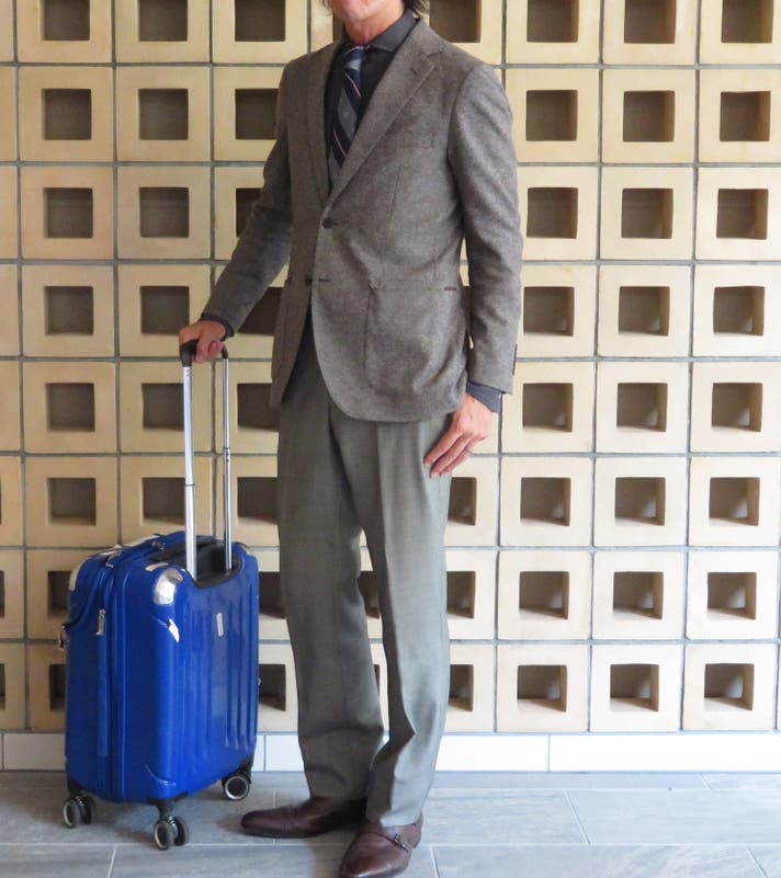 シャツ1枚でカジュアルな着こなし 衿台の釦だけではなく、身頃の第一釦を外しても衿が綺麗に立ち、だらしなくなりません。