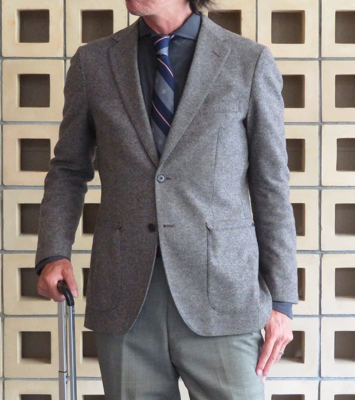 拘りポイント⑤着丈の長さ 着丈感にも拘りました。パンツアウトでの着こなし時に着丈が長すぎず、またパンツインしてもシャツが出てこないような丈感に設定しました。