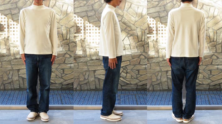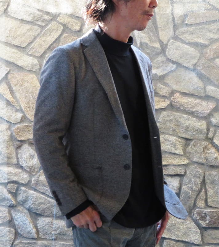 ジャケットインでも様になります。程よい肉厚感なので、ジャケットの下でもごわつきなし。