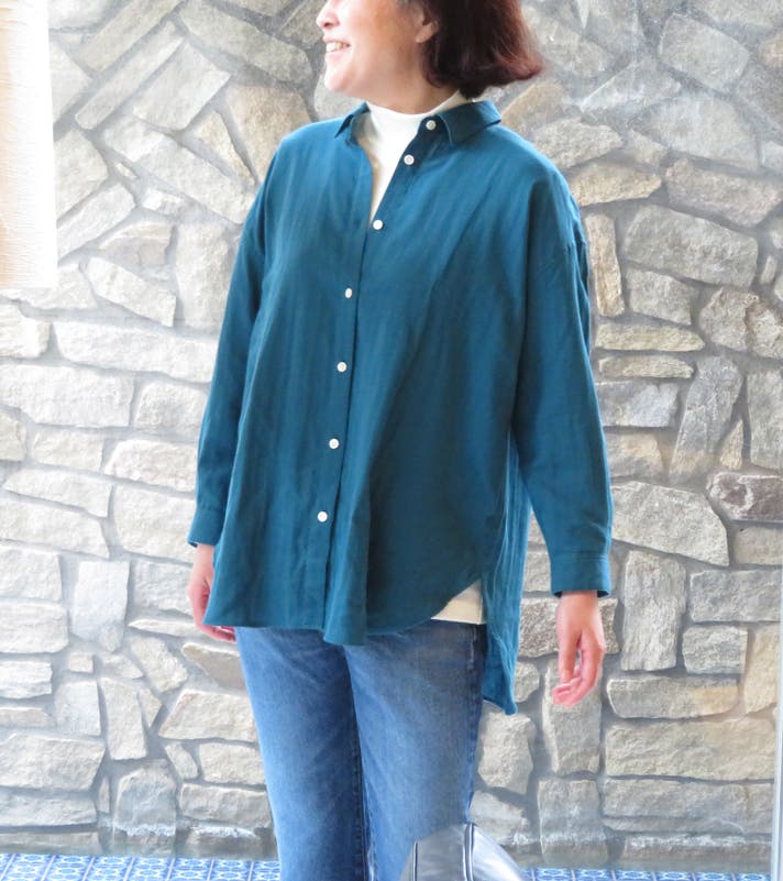 ※弊社で洗濯機での洗いと、手洗いでの洗いでの寸法変化を検証しました。素材の特性上、1回目の洗濯後5%~6%前後の縮みが生じます(特に縦方向)。なので着丈の仕上がりサイズは、上記サイズ表より3㎝長くあげております。袖丈も2㎝長くあげております。1回洗濯後に着丈、袖丈は上記サイズに近くなるイメージです(個体差あり)。洗濯2回目以降はさほど縮みません。洗濯方法は中性洗剤を使用した手洗いを推奨しております(縮みの軽減、生地の傷み軽減)。取り扱い方法に詳しく明記しておりますのでご確認下さい。