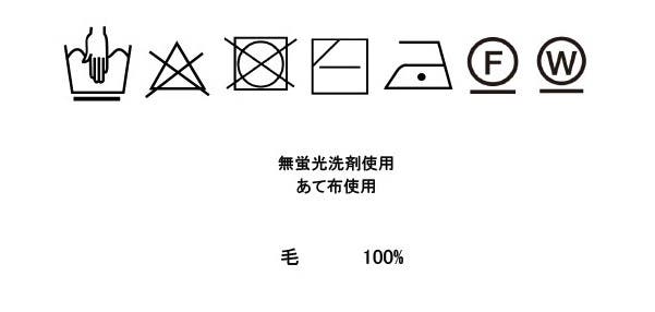 素材の特性上、洗濯による縮みと摩擦により毛玉が生じやすいので、長く着用頂くために下記ご確認願います。ウール100%素材ですが、ご家庭で手洗い洗濯ができます。ウールはデリケートなので、洗濯するとどうしてもダメージを受けてしまいます。インナーなどの上に着て、肌に直接触れていなければ、毎回洗濯する必要はありません。手洗いする際は、30℃以下の水で優しく押し洗いをして下さい。ウールはアルカリに弱い素材なので洗濯洗剤も漂白剤や蛍光増白剤を含んでいない、中性洗剤(オシャレ着用洗剤)を使用してください。脱水は乾燥したタオルで挟んで、水分を吸収するようにします。脱水を洗濯機で行う場合は、ネットに入れて下さい。長時間の脱水は縮みの原因にもなりますので、30秒ほどの脱水としてください。脱水後はたたくように伸ばした後、日陰での平干しをお奨めします。またウールは洗濯時に水分を含むと、硫黄のようなにおいが発生します。濡れた状態だとにおいが強く感じられますが、乾くと収まります。ウールの特性の為、完全になくすことは出来ませんが繰り返しの利用、洗濯で徐々に軽減されます。