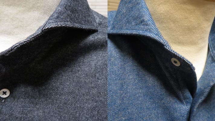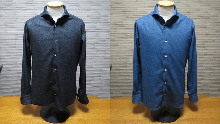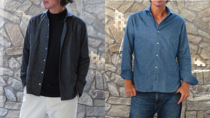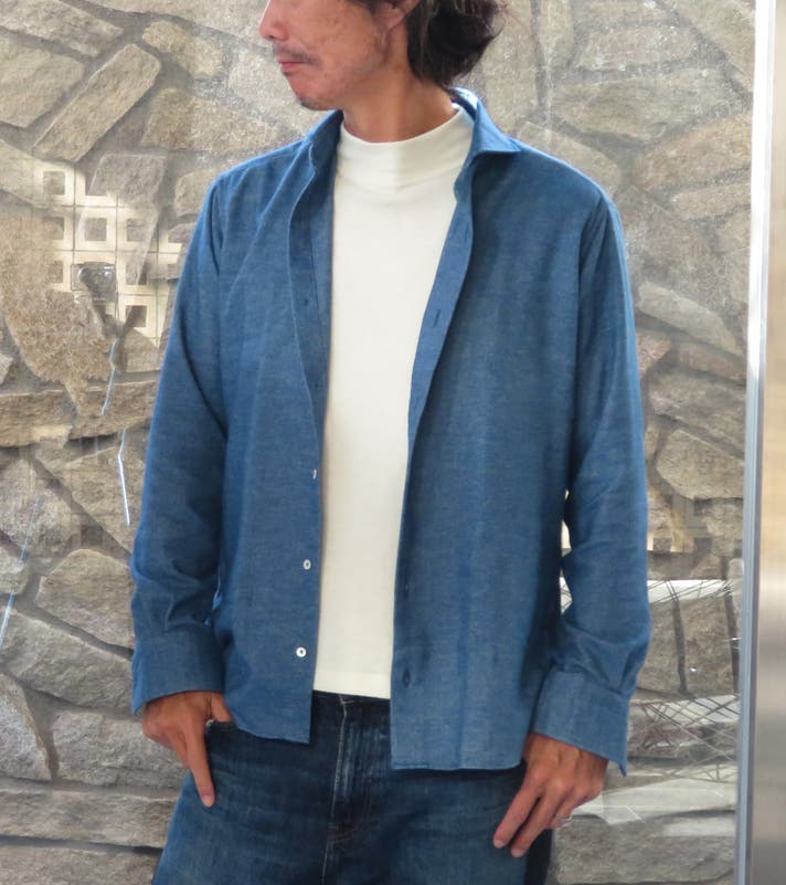 カラーは2色ご準備 カラーはブラックとブルーの2色。一見デニムのような表情が魅力の1枚。その表情からは想像がつかない柔らかさが魅力です。(透け感なし)