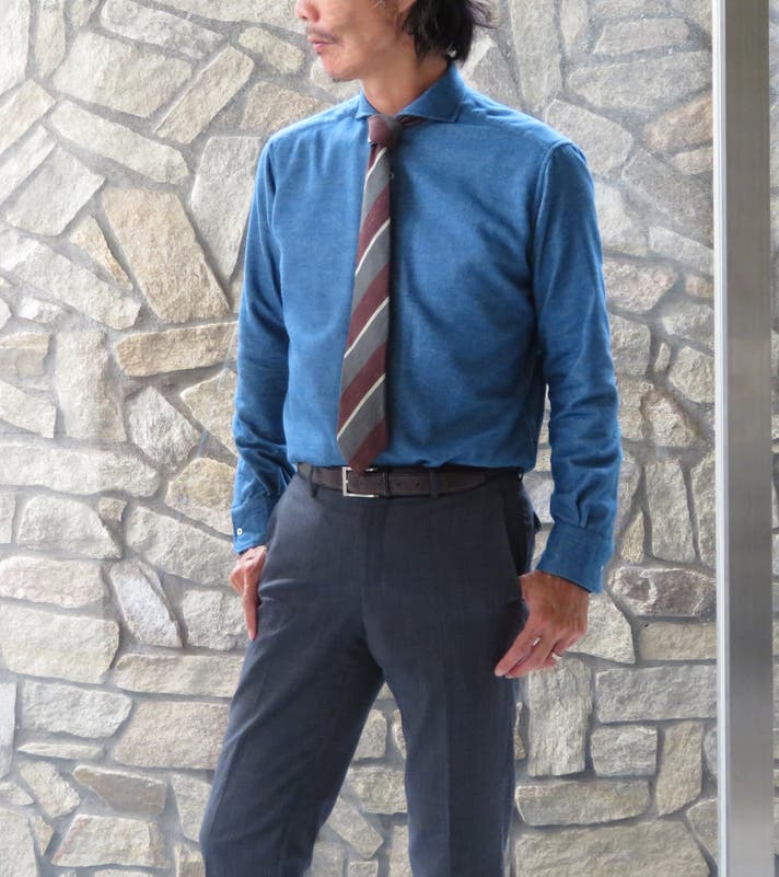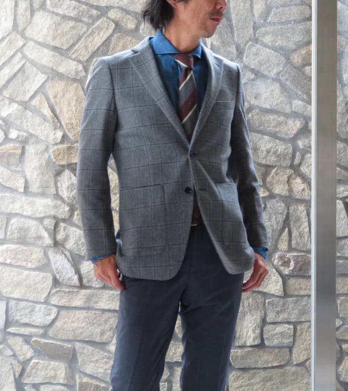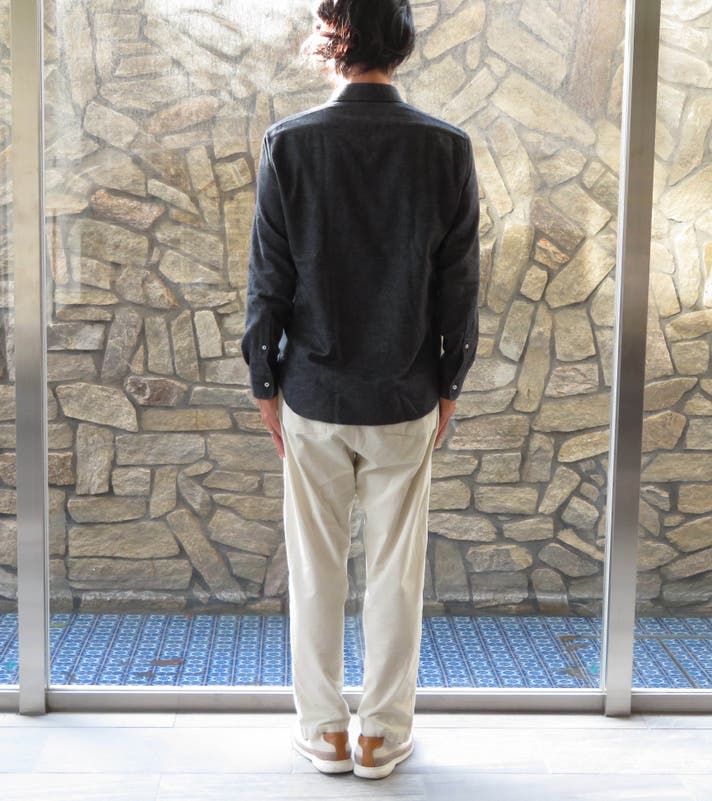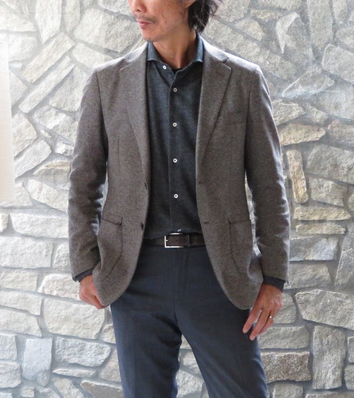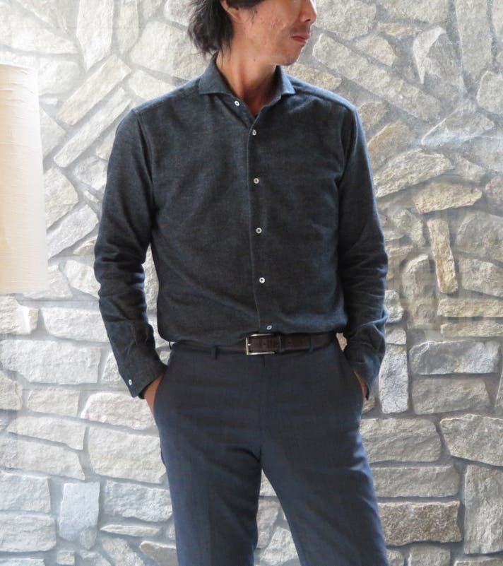 - カシミアに並ぶ高級素材ヤクをブレンドした糸で織ったフランネル生地は極上の風合いを生み出します。