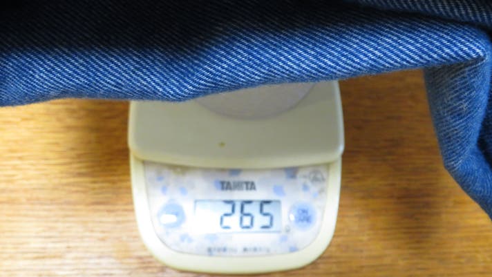 見た目と相反した軽さ デニムライクな表情と起毛でのふんわり感から、重量は重めに見えますが、Lサイズで約270gと決して重くはございません。