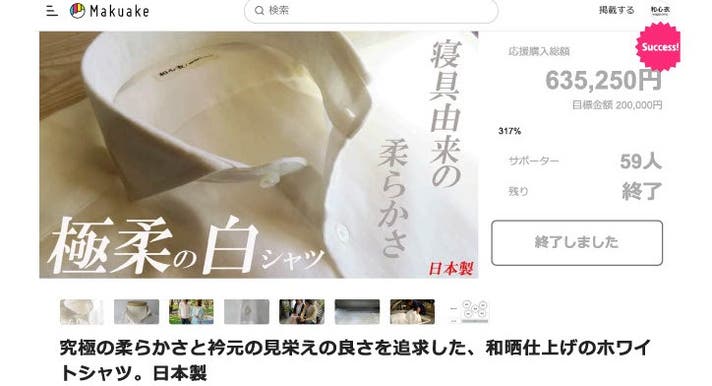 「Makuake(マクアケ)」は、実行者の想いを応援購入によって実現するアタラシイものやサービスのプラットフォームです。このページは、 ファッションカテゴリの 「究極の柔らかさと衿元の見栄えの良さを追求した、和晒仕上げのカラーシャツ。日本製」プロジェクト詳細ページです。