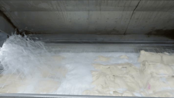 和晒は時間と手間がかかるので、現在は世界的に主流な洋晒がほとんどです。洋晒は生地を焚くのではなく、たくさんのローラを通し4時間~5時間ほどで漂白していく方法です。