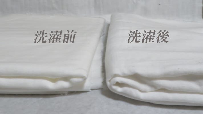 拘りポイント①和晒し仕上げの柔らかい風合い 素材はコットン100%のダブルガーゼ生地 和晒しで仕上げたダブルガーゼは、柔らかさが何よりも魅力です。また通気性・吸水性に優れ、夏は涼しく冬は暖かく、1年中快適に着て頂けます。和晒しのダブルガーゼ生地は洗うほどに膨らみが増します。