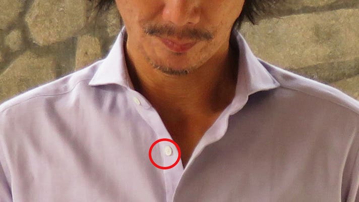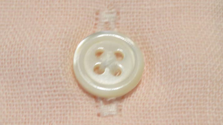 拘りポイント④釦は天然の貝釦 高級ドレスシャツでも使用される天然の貝釦を使用。